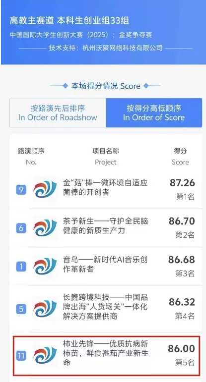 近日,中国国际大学生创新大赛(2025)全国总决赛在郑州大学举办。我校参赛项目《柿业先锋——优质抗病新柿苗,鲜食番茄产业新生命》经过激烈角逐,勇夺全国总决赛银奖。这不仅是我校在该项顶级赛事中的首个国家级银奖,更标志着我校创新创业教育质量实现历史性跨越。
