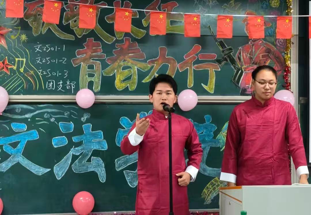 团日活动在庄重的氛围中拉开帷幕,全程亮点纷呈、暖意融融。铿锵有力的诗朗诵,带领师生回溯二万五千里长征的峥嵘岁月,感受革命先辈的信仰之光;活力飞扬的歌曲演唱,尽显新时代青年的蓬勃朝气;幽默逗趣的相声与小品,在欢声笑语中传递青春正能量;激昂高亢的大合唱,以嘹亮歌声抒发对祖国的赤诚热爱与对理想的执着追求,多样节目展现了新时代大学生的昂扬风貌。活动尾声,曹书记作总结讲话,他强调,团日活动是引领青年成长的重要载体,未来要持续打造接地气、有温度、有实效的主题活动,同时勉励大家将长征精神转化为奋进动力,立足岗位勇担使命,为国家发展贡献青春力量。