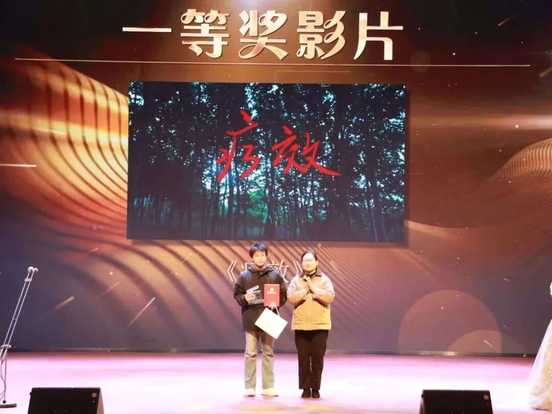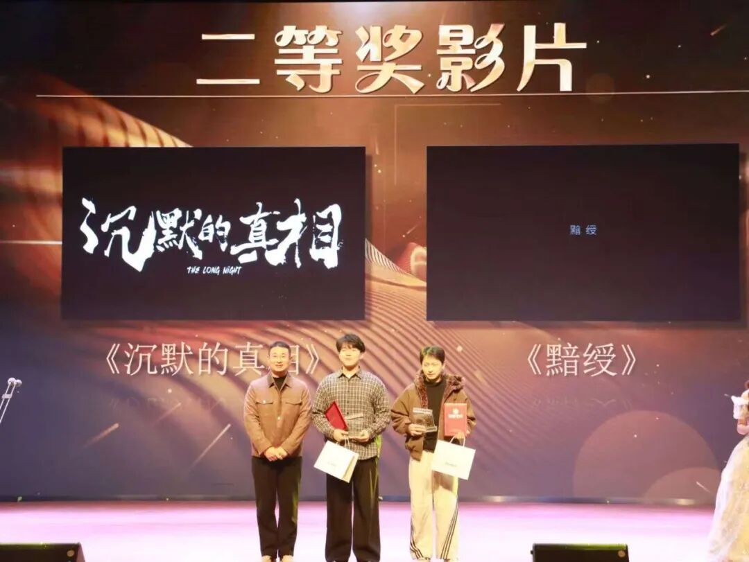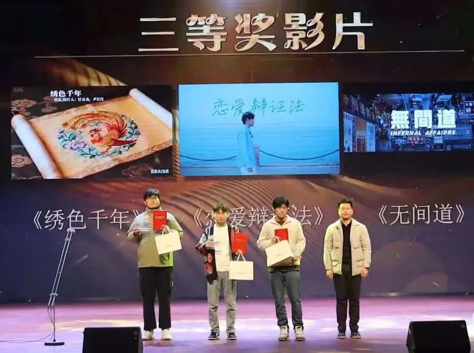 开场表演《果敢》以蓬勃的舞台张力登场,点燃全场正式拉开盛典序幕。本届电影节共征集超50部作品,覆盖原创、AI智创、经典再现三大赛道,经专业评审评议,当晚奖项逐一揭晓:由特邀颁奖嘉宾揭晓综合类奖项,《绣色千年》《无间道》《恋爱辩证法》获三等奖,《沉默的真相》《黯绶》获二等奖,《疗效》凭借综合创作实力摘得一等奖;随后单项奖环节,由各开奖嘉宾依次公布结果,涵盖最佳创意奖、最佳编剧奖、最佳导演奖、最佳女主角、最佳男主角五大奖项,获奖代表上台领奖并分享创作心得,真挚的表达引发全场共鸣,掌声此起彼伏。现场还穿插设置获奖作品赏析环节,通过片段放映与创作解读,让观众深入感受作品的艺术内核。