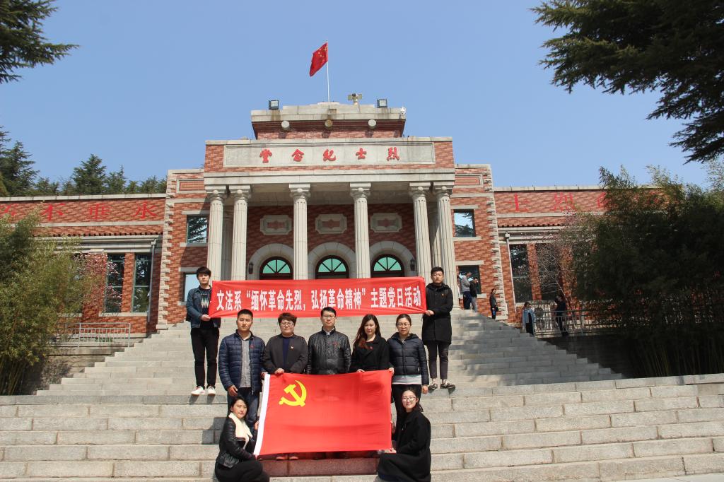 为加强思想政治工作,增强师生的爱国主义情感。4月1日,文法系党员师生代表在文法系党支部副书记曹钊庆带领下赴胶东革命烈士陵园开展爱国主义教育活动。