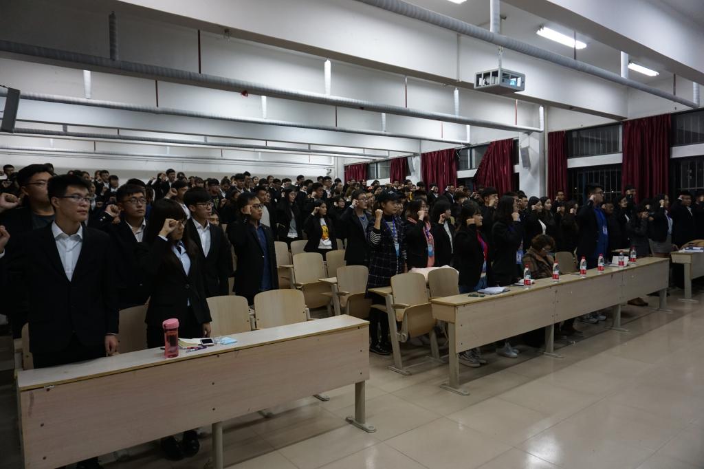 仪式伊始,学生会主席严可带领在场学生干部进行文法系学生干部宣誓。本次开班仪式由曹钊庆副书记为学生干部讲第一堂课——学生干部的基本要求及应坚持的原则。曹书记提出,学生干部是院系发展、活动开展的主力军,提升学生干部的素质、能力对院系教育建设至关重要。曹书记向我系学生干部提出正确认识自己,“坚持态度、速度、力度、高度四个基本原则”,“做到不要抱怨、不要计较、不要挑剔”,“提升管理、观察、语言表达、创新、突发事件处理、自我控制六项基本能力”四个基本要求,并进行详细讲解。最后,曹书记表达了自己对全体学生干部的殷切期望,希望大家“认真做好每一件事”,从小处着手,不懈前行。