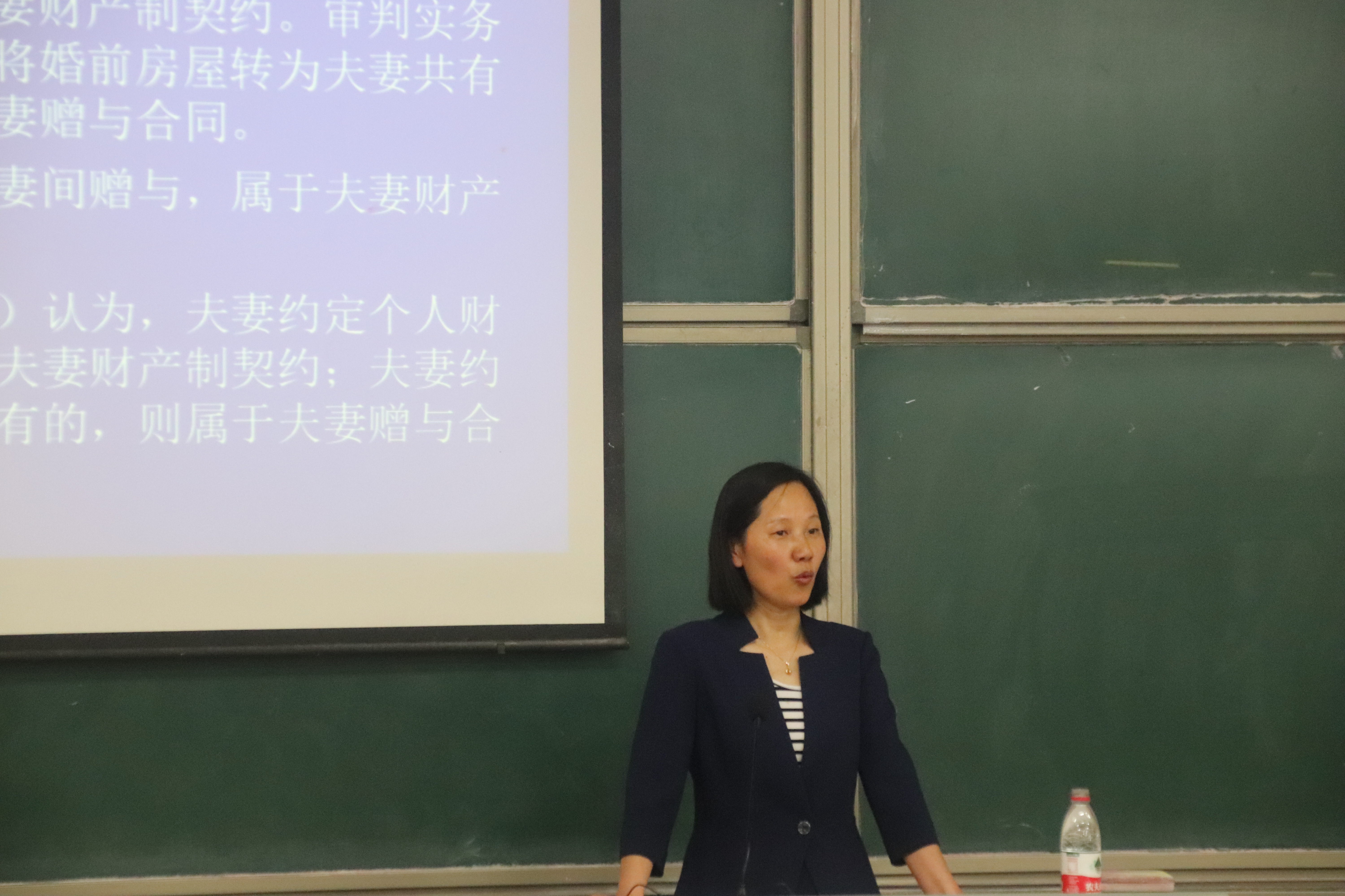讲座由阐述“合同与契约”和“合同与协议”的异同展开,范李瑛教授结合事实案例和不同学者的观点,迅速将所有学生带入讲座的气氛中。她指出夫妻财产制契约不仅具有身份性质,也具有财产性质,并且基于民事法律行为而致物权变动。结合生动的案例,范教授将婚姻法上的夫妻财产制和民法中的物权法结合起来,对两者的适用问题作简要分析,又在此基础上分成三个模块,分别从性质、依据和选择三个角度切入。讲座全程,范教授语言生动,讲解细致,从多角度剖析问题的本质,使在座师生深刻领悟了夫妻财产制所致物权变动的法律原因和法律后果。